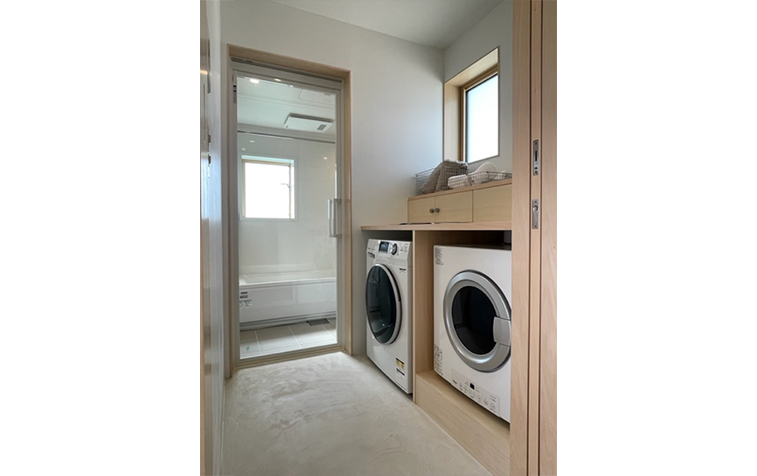 「乾太くん」を使えば、約1時間で洗濯物をカラッと、フワッと乾かせるため、天候や時間帯を気にせず使えます。尚建工務店では、「乾太くん」は約3軒に1軒のお客様が導入しているというぐらい人気の設備!