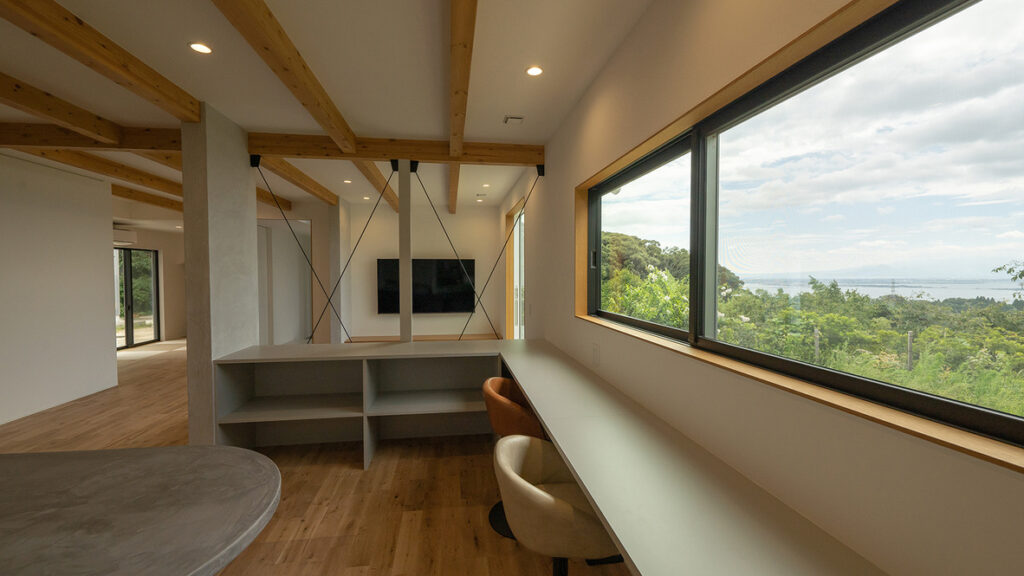 青空や山の緑を眺めながら、お子さんの勉強や家事・作業スペースとしてご活用いただけます。