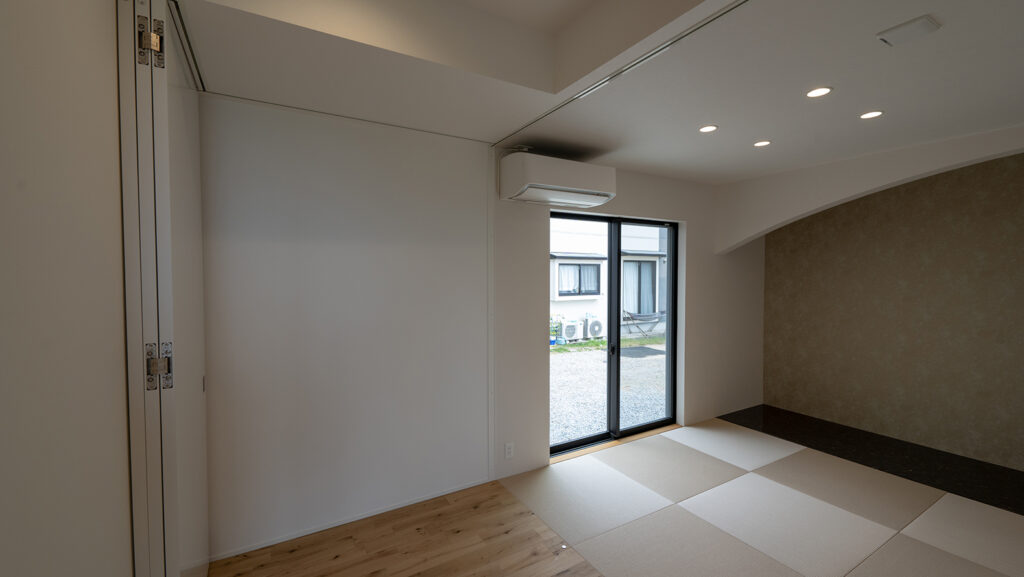 リビングにつながる和室には、稼働扉を設置し簡単に個室に切り替えが可能です。