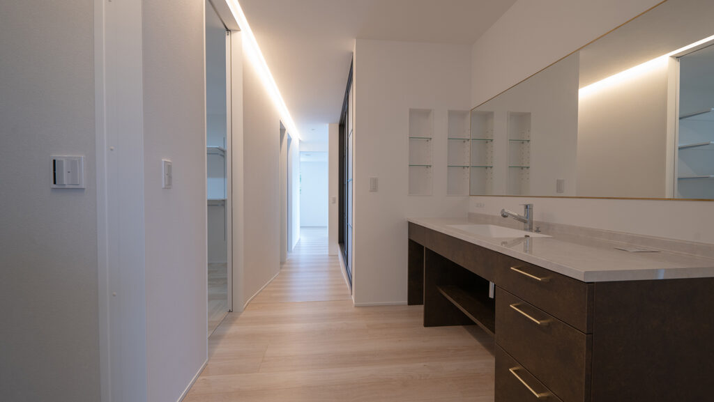 生活の全てが2階で完結するので、お風呂上がりや朝の身支度もスムーズに行っていただけます。