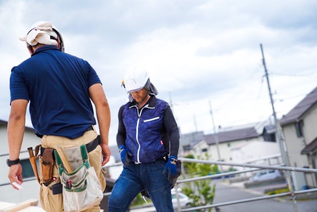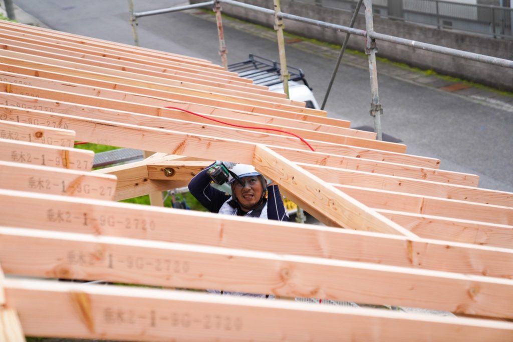 天窓の開口に大工さん