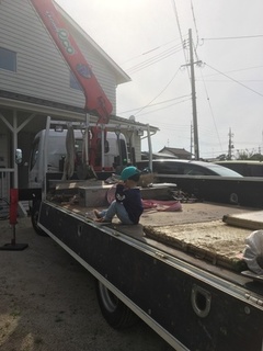 石を運ぶときに大きなユニックがお家に来て、とっても喜んでくれたK君♪