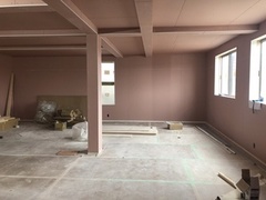 社屋の外観はグリーンの壁が貼られ、日吉津の小学生の間では「新しい体育館が出来る!!」と噂らしいですよ(笑)室内も2Fはそろそろ壁紙工事に入ります!1Fの作業場も順調に進みこれから夜な夜なみんなでペンキぬりぬり大会です!