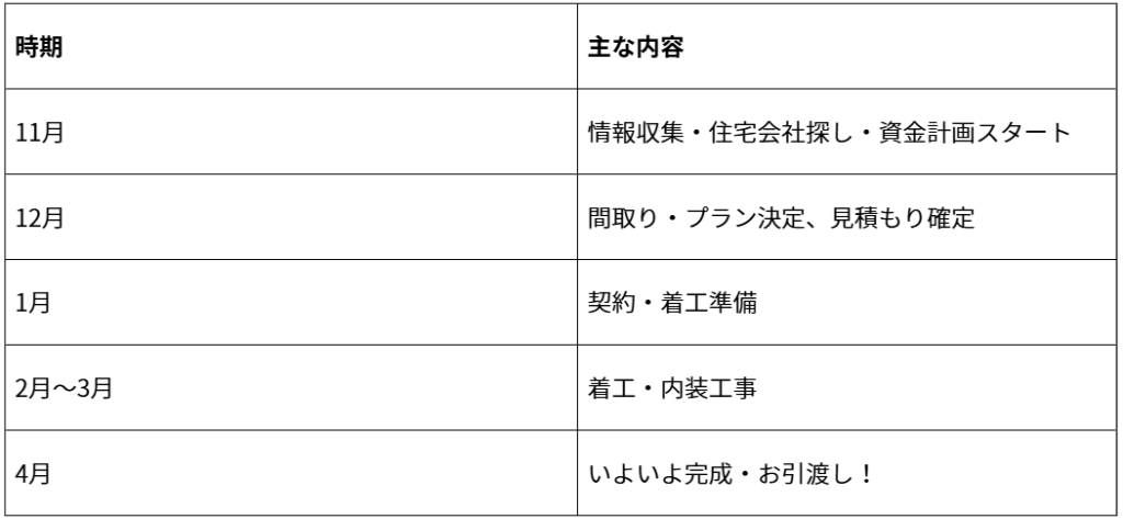 11月から動けば間に合う!山陰で春入居のための家づくりスケジュール
