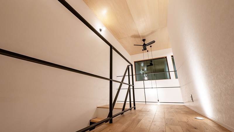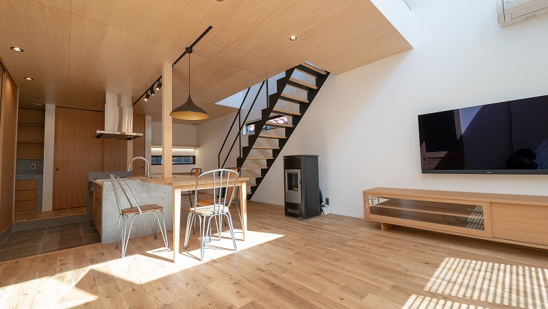 ペレットストーブと木とアイアンが調和したナチュラルモダン住宅です