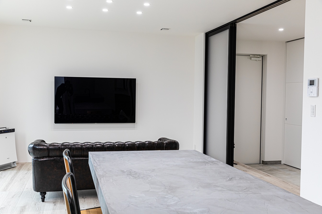 シンプルな白とグレーを基調としたお家です